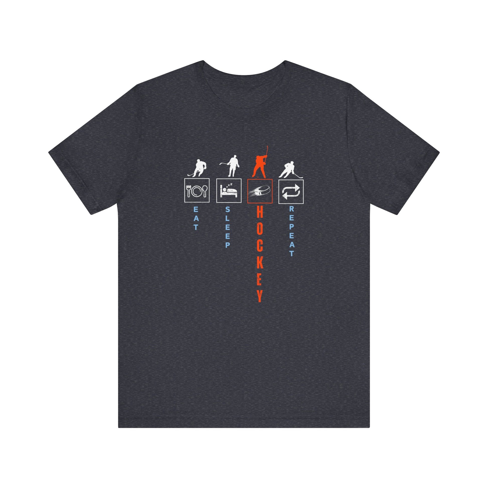 Eat Sleep Repeat Hockey Shirt - Hockey Lifestyle Tee, Sports Fan T-Shirt, Gift for Hockey Lovers, Unisex Jersey Tee