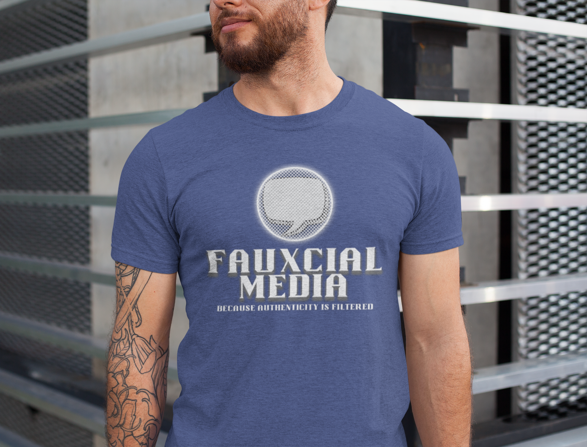 Fauxcial Media Short Sleeve Tee | Authenticity T-Shirt, Unisex Graphic Tee, Social Media Humor Shirt, Gift for Friends, Trendy Casual Wear